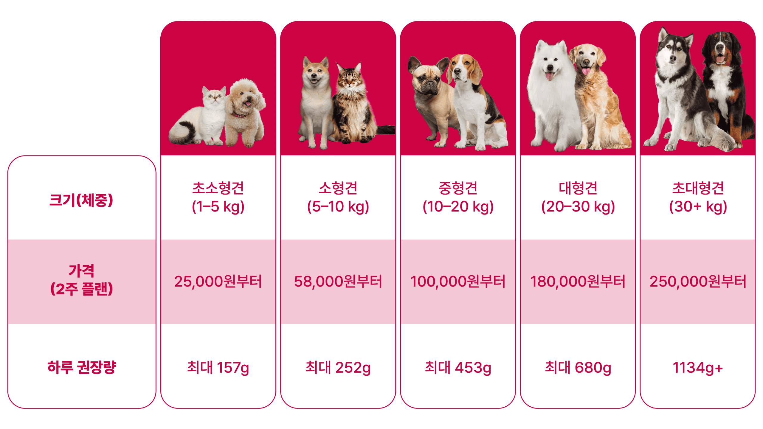 금액은 반려동물의 목표 체중, 성장 단계, 활동 수준 및 기타 생리적 요인에 따라 달라질 수 있습니다.
